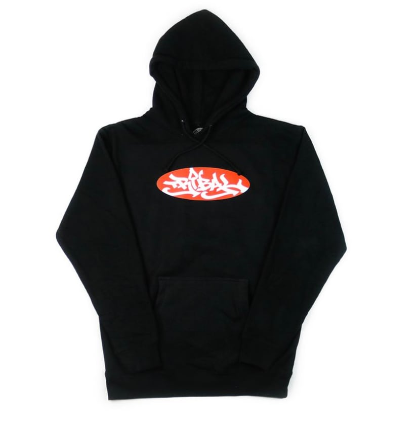 TRIBAL STREETWEAR CLASSIC OVAL – BLACK MEN’S PULLOVER HOODIE トライバルストリートウェア クラシック オバール ブラック メンズ プルオーバー フード フーディー | CCCSURFSK8SHOP